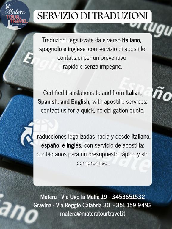 Siamo lieti di informarvi che da ora è possibile effettuare traduzioni legalizzate dall'italiano all'inglese o spagnolo e viceversa.